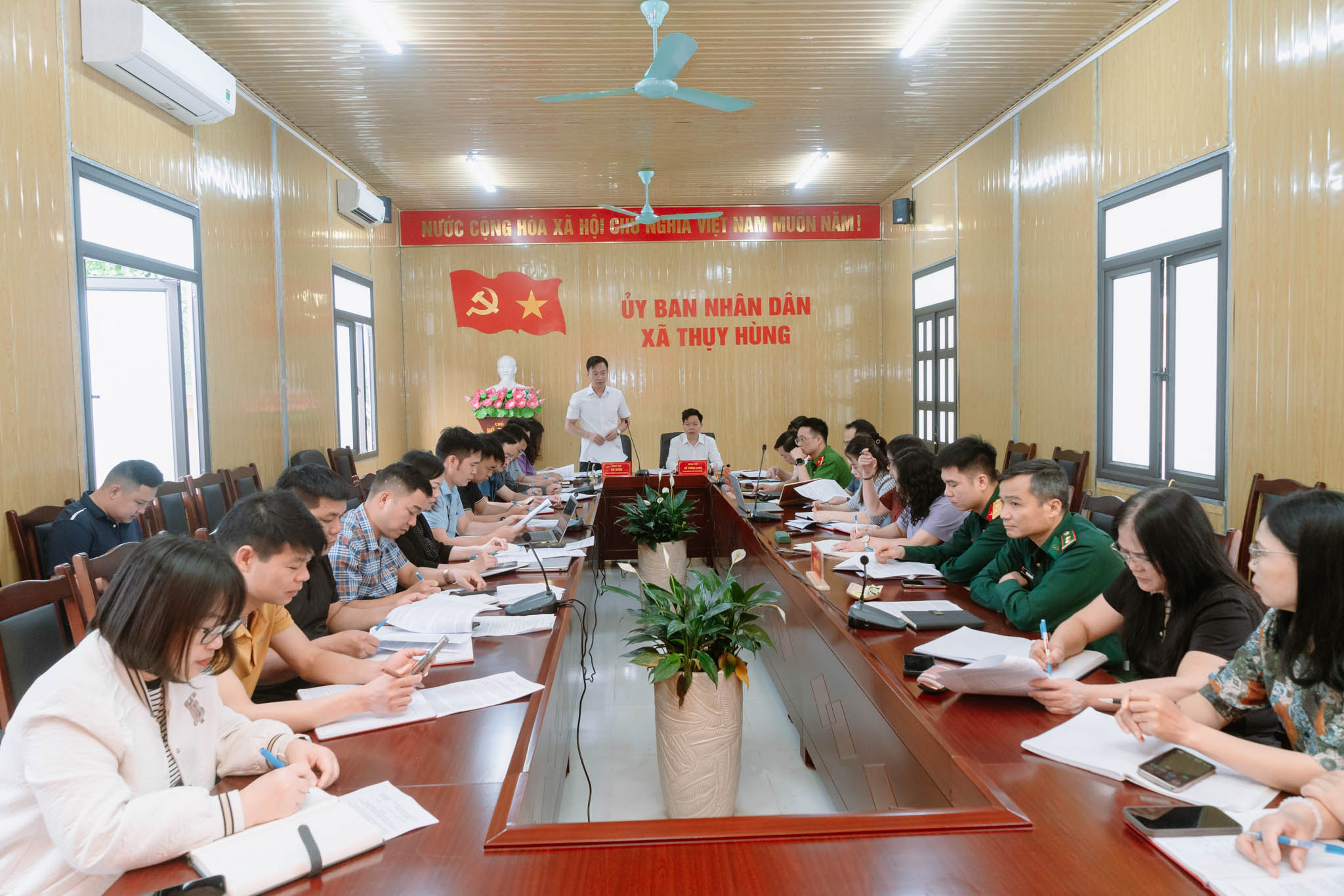 Sáng 01/4, UBND xã Thụy Hùng tổ chức Hội nghị đánh giá kết quả thực hiện nhiệm vụ phát triển kinh tế - xã hội quý I, triển khai phương hướng, nhiệm vụ trọng tâm quý II năm 2026. Dự hội nghị có lãnh đạo Thường trực Đảng ủy, HĐND, UBND, Ủy ban MTTQ Việt Nam xã; lãnh đạo các ban, ngành, đoàn thể, các đơn vị trường học và lực lượng vũ trang trên địa bàn. Đồng chí Chủ tịch UBND xã chủ trì Hội nghị.
