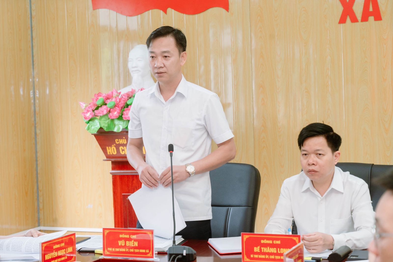 Phát biểu chỉ đạo tại hội nghị, đồng chí Bí thư Đảng ủy xã đề nghị UBND xã tiếp tục phát huy kết quả đạt được, tập trung lãnh đạo, chỉ đạo thực hiện hiệu quả các nhiệm vụ trọng tâm quý II; đẩy mạnh phát triển sản xuất nông, lâm nghiệp bền vững; nâng cao chất lượng các tiêu chí nông thôn mới; quan tâm công tác an sinh xã hội, giữ vững quốc phòng – an ninh.