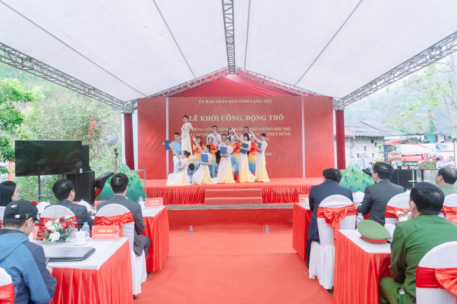 Lễ khởi công tại xã Thụy Hùng được kết nối trực tuyến với 17 điểm cầu trên cả nước đồng loạt khởi công xây dựng các trường nội trú liên cấp, tiến tới hoàn thành mục tiêu tại Thông báo kết luận số 81-TB/TW của Bộ Chính trị.