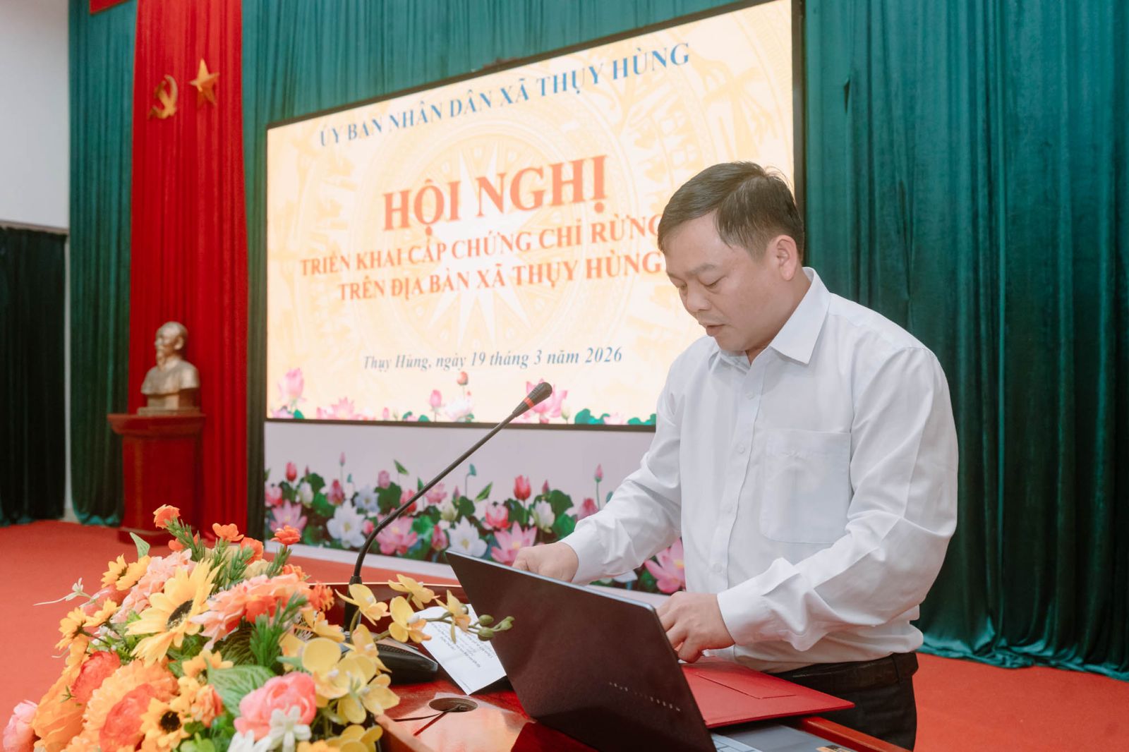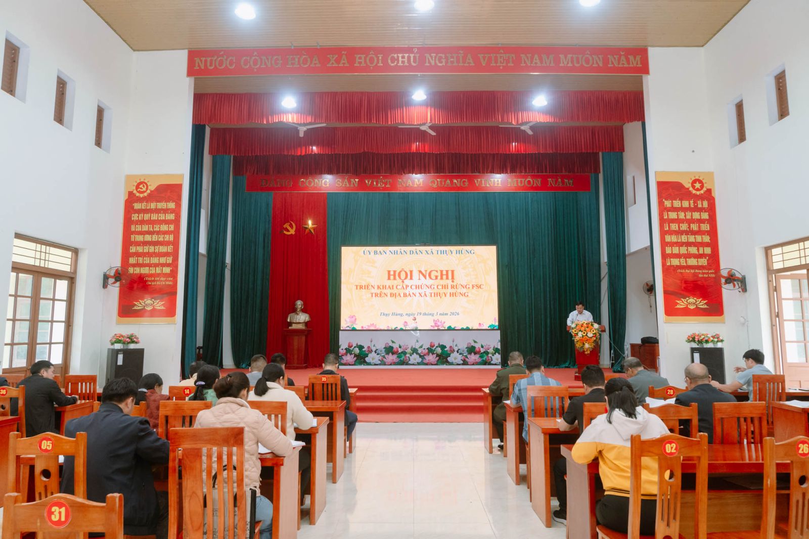 Chiều ngày 19/3/2026, UBND xã Thụy Hùng phối hợp với Hạt Kiểm lâm khu vực Văn Lãng và Công ty Trách nhiệm hữu hạn Vân Nham tổ chức hội nghị triển khai cấp chứng chỉ rừng FSC trên địa bàn xã.