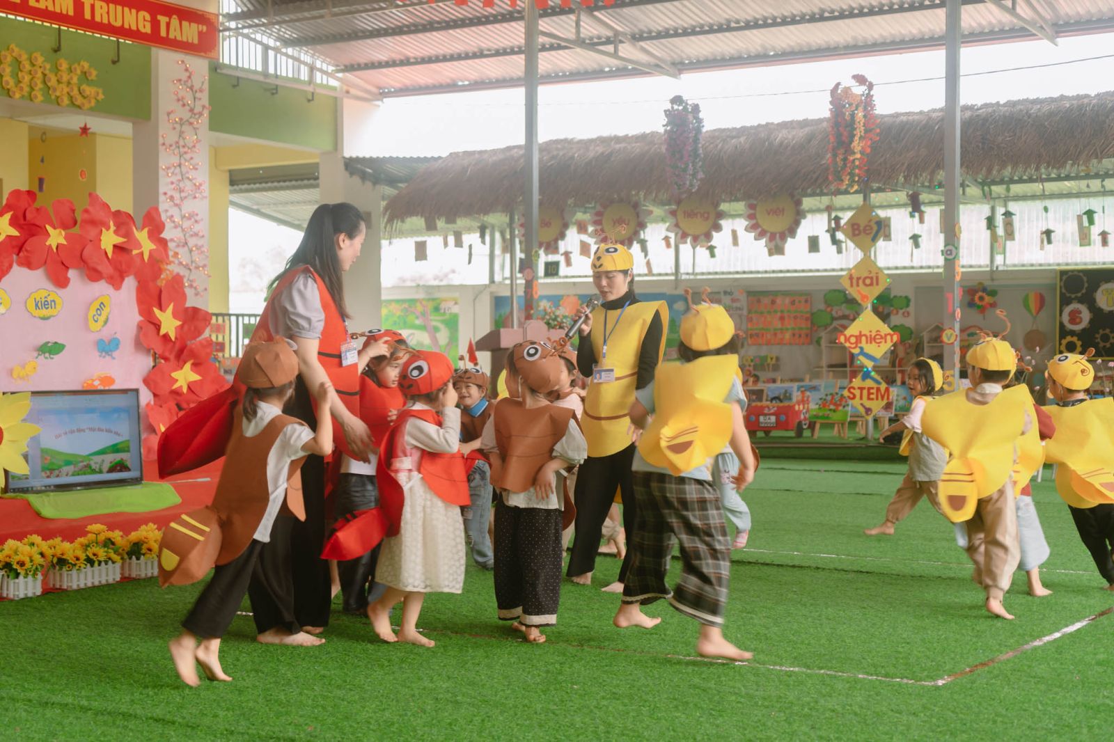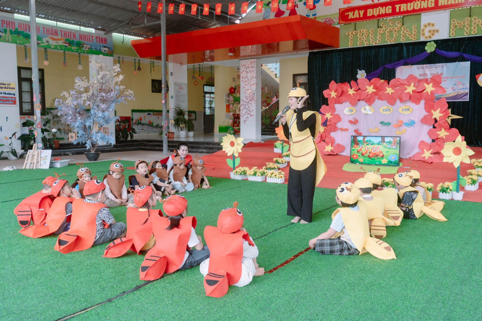 Tại hội thảo, giáo viên nhà trường và phụ huynh đã được dự giờ 2 tiết dạy minh họa giàu tính thực tiễn. Ở tiết thứ nhất, lớp 3 tuổi A tổ chức hoạt động “Nhận biết một số cảm xúc: vui, buồn, tức giận”, giúp trẻ bước đầu hình thành kỹ năng nhận diện và thể hiện cảm xúc, góp phần phát triển toàn diện về tâm lý – xã hội. Tiết thứ hai, lớp 5 tuổi A triển khai hoạt động giáo dục STEM thông qua bài thơ “Đàn kiến nó đi”, lồng ghép khéo léo giữa ngôn ngữ, khoa học và kỹ năng quan sát, trải nghiệm, qua đó kích thích tư duy sáng tạo và khả năng khám phá của trẻ.
