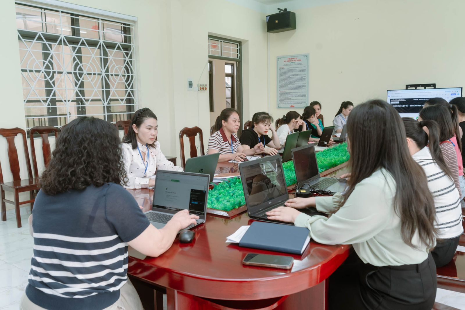 Không chỉ dừng lại ở dự giờ, hội thảo còn tổ chức tập huấn, hướng dẫn sử dụng kho học liệu số cho toàn thể giáo viên. Nội dung tập huấn tập trung vào việc khai thác, ứng dụng hiệu quả các nguồn tài nguyên số trong thiết kế bài giảng, góp phần đổi mới phương pháp dạy học theo hướng hiện đại, linh hoạt và phù hợp với xu thế chuyển đổi số trong giáo dục.