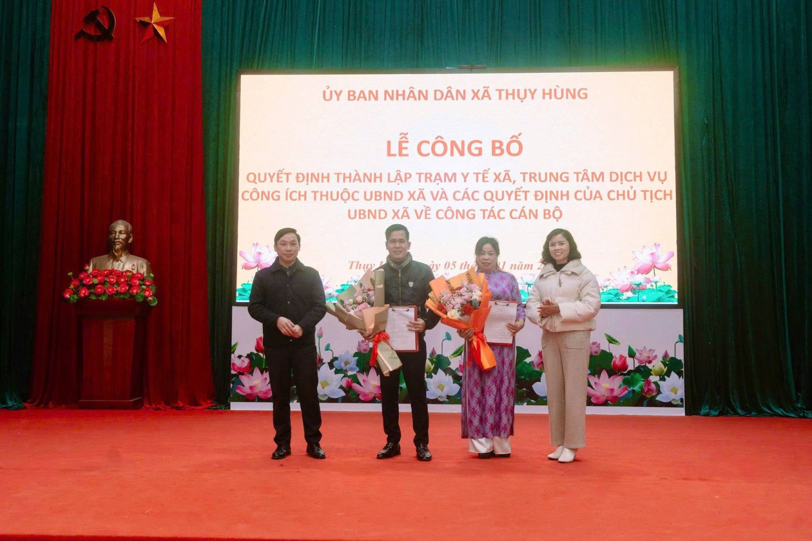 Tại buổi lễ, đại diện lãnh đạo phòng Văn hóa – Xã hội xã đã công bố Quyết định của UBND xã về việc thành lập Trạm Y tế xã Thụy Hùng . Theo quyết định, Trạm Y tế xã là đơn vị sự nghiệp công lập trực thuộc UBND xã, có chức năng thực hiện nhiệm vụ chăm sóc, bảo vệ và nâng cao sức khỏe nhân dân trên địa bàn theo quy định của pháp luật. Tiếp đó công bố Quyết định thành lập Trung tâm Dịch vụ công ích thuộc UBND xã Thụy Hùng, Trung tâm là đơn vị sự nghiệp công lập, thực hiện các nhiệm vụ liên quan đến dịch vụ công ích, phục vụ quản lý, vận hành, duy tu, bảo dưỡng các công trình, hạ tầng và các nhiệm vụ khác theo phân công của UBND xã.