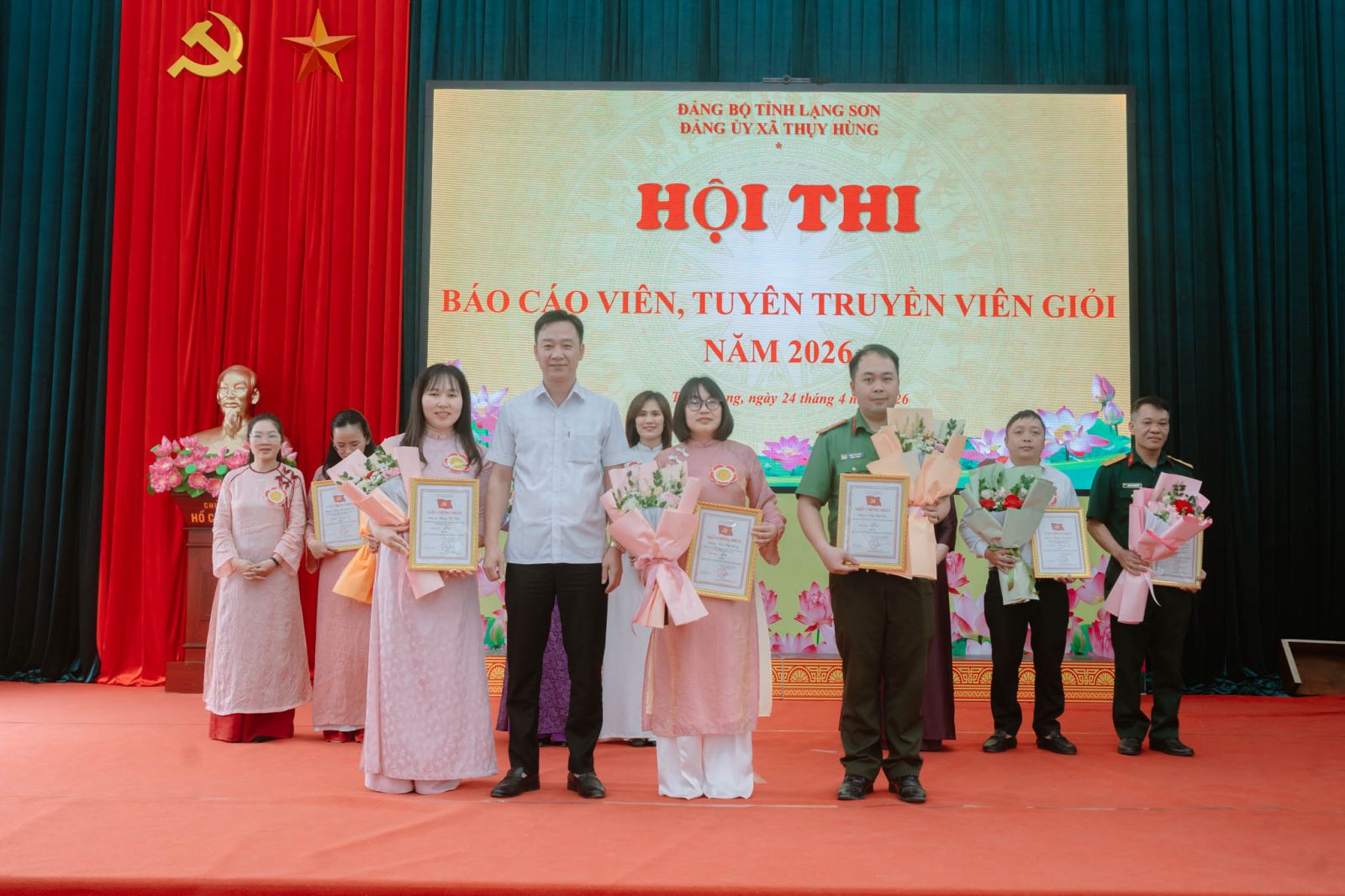 Sáng ngày 24/4, Đảng ủy xã Thụy Hùng tổ chức Hội thi Báo cáo viên, Tuyên truyền viên giỏi cấp xã năm 2026. Dự Hội thi có các đồng chí trong Thường trực Đảng ủy, lãnh đạo HĐND, UBND, Ủy ban MTTQ Việt Nam xã, cùng Bí thư các chi bộ trực thuộc Đảng ủy.
