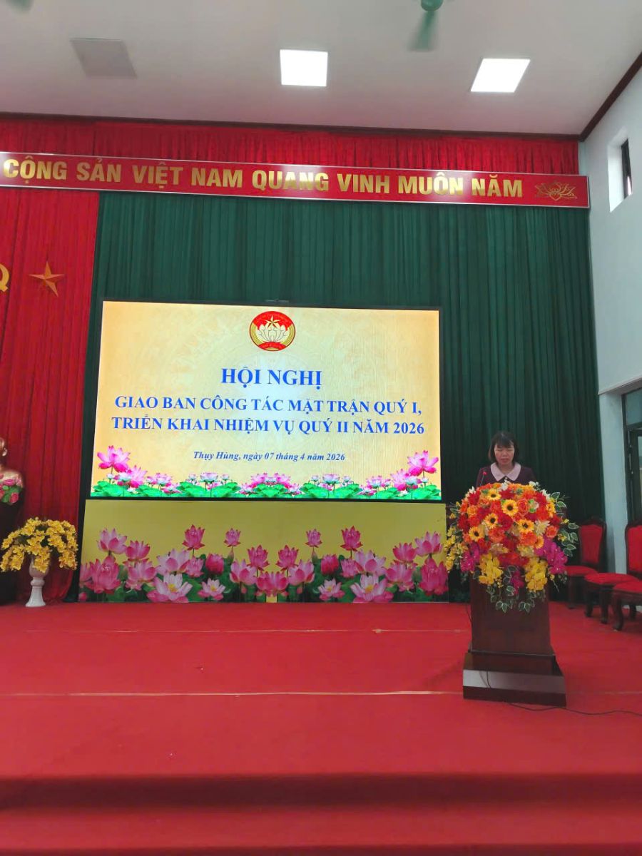 Ngày 07/4, Ủy ban MTTQ Việt Nam xã Thụy Hùng tổ chức Hội nghị giao ban quý I, triển khai nhiệm vụ trọng tâm quý II năm 2026. Dự hội nghị có các đồng chí lãnh đạo Thường trực Đảng ủy, HĐND, UBND, Ủy ban MTTQ Việt Nam xã; cùng đội ngũ bí thư chi bộ, trưởng ban công tác Mặt trận các thôn trên địa bàn.