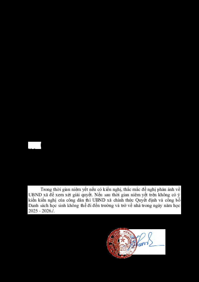 | Tiêu đề văn bản | Về việc niêm yết công khai danh sách học sinh không thể đi đến trường và trở về nhà trong ngày năm học 2025 - 2026 Căn cứ Nghị định s | ||