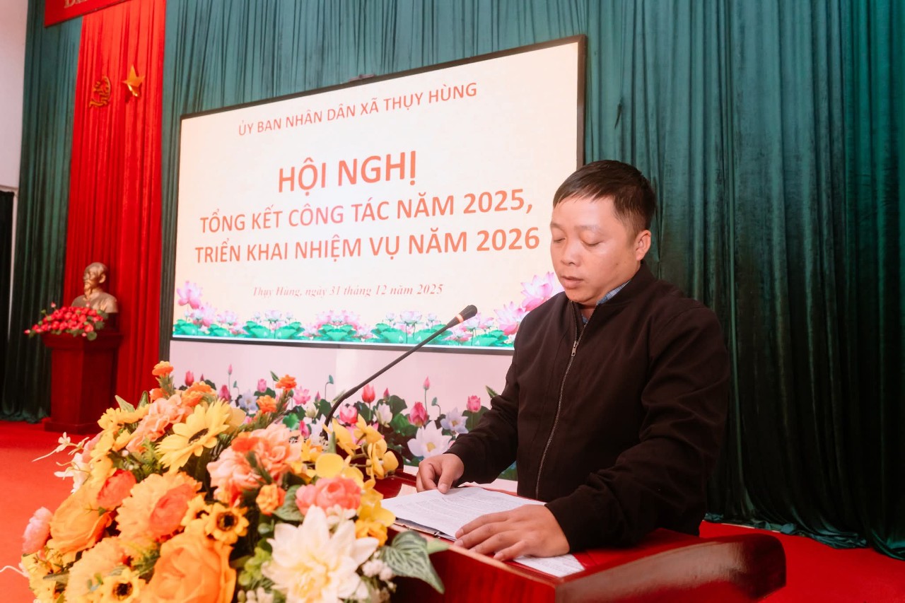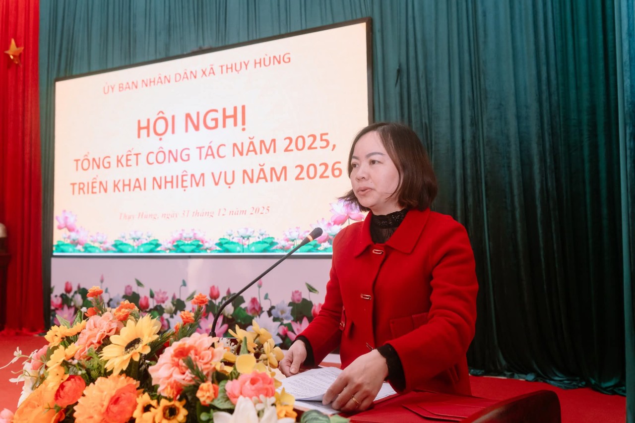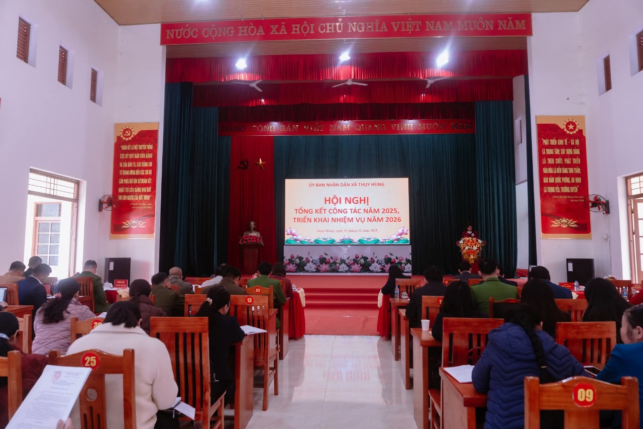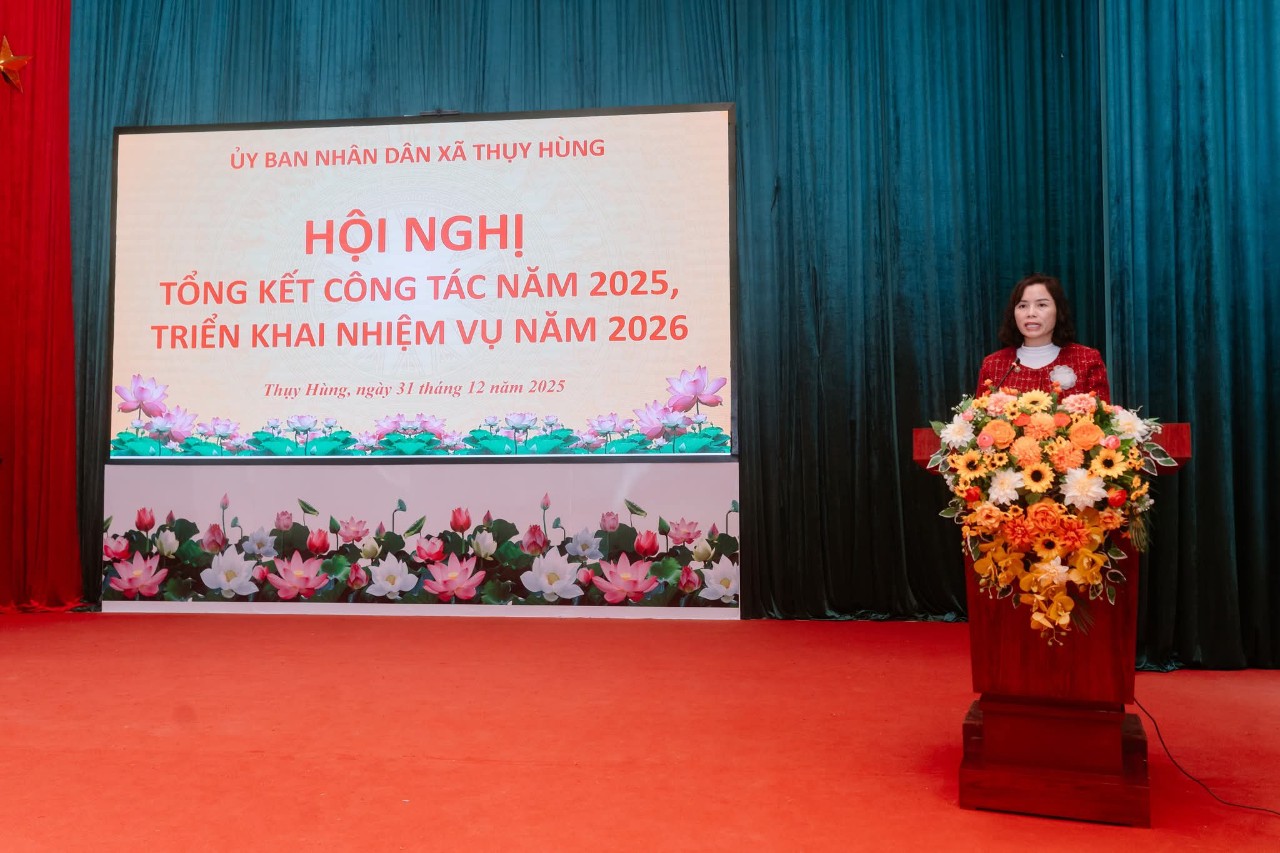 🔔UBND XÃ THỤY HÙNG TỔ CHỨC HỘI NGHỊ TỔNG KẾT CÔNG TÁC NĂM 2025, TRIỂN KHAI NHIỆM VỤ NĂM 2026 ➡️Thực hiện chương trình công tác năm 2025, chiều 31/12/2025, UBND xã Thụy Hùng long trọng tổ chức Hội nghị tổng kết công tác năm 2025 và triển khai nhiệm vụ năm 2026. Dự và chỉ đạo Hội nghị có Đồng chí Đàm Thanh Loan, Phó Bí thư thường trực Đảng uỷ xã, các đồng chí trong Thường trực HĐND, UBND, Ủy ban MTTQ xã; trưởng các ban, ngành, đoàn thể; cán bộ, công chức xã và đại diện các thôn trên địa bàn. ➡️Tại hội nghị, các đại biểu đã được nghe báo cáo tổng kết công tác chỉ đạo, điều hành của UBND xã trong năm 2025. Báo cáo nêu rõ: năm 2025, UBND xã Thụy Hùng đã tập trung chỉ đạo thực hiện đồng bộ các nhiệm vụ phát triển kinh tế – xã hội, quốc phòng – an ninh; tình hình sản xuất nông nghiệp ổn định, Việc vận hành mô hình chính quyền địa phương 2 cấp được thực hiện hiệu quả, thu ngân sách đạt 362,6% dự toán tỉnh giao; diện tích trồng rừng đạt 100,3% kế hoạch; lĩnh vực văn hóa – xã hội được quan tâm triển khai; công tác xây dựng nông thôn mới được quan tâm; các lĩnh vực văn hóa – xã hội, giáo dục, y tế tiếp tục được duy trì và nâng cao chất lượng; an sinh xã hội được đảm bảo; cải cách hành chính có nhiều chuyển biến tích cực; an ninh chính trị, trật tự an toàn xã hội được giữ vững. ➡️Hội nghị cũng dành thời tham luận về công tác phòng chống ma túy, an ninh trật tự trên địa bàn ; Công tác giải quyết thủ tục hành chính gắn với nâng cao chất lượng phục vụ người dân và doanh nghiệp; phong trào “Toàn dân đoàn kết xây dựng đời sống văn hóa ở khu dân cư”. ➡️Phát biểu chỉ đạo tại Hội nghị, đồng chí Phó Bí thư thường trực Đảng uỷ xã ghi nhận, biểu dương những kết quả UBND xã Thụy Hùng đã đạt được trong năm 2025. Đồng thời đề nghị UBND xã tiếp tục lãnh đạo, chỉ đạo toàn diện các lĩnh vực. Tập trung lãnh đạo, chỉ đạo thực hiện đạt và vượt các chỉ tiêu, các nhiệm vụ trọng tâm; Lãnh đạo chuẩn bị chu đáo và tổ chức thành công cuộc bầu cử đại biểu Quốc hội khóa XVI và đại biểu HĐND các cấp nhiệm kỳ 2026-2031.