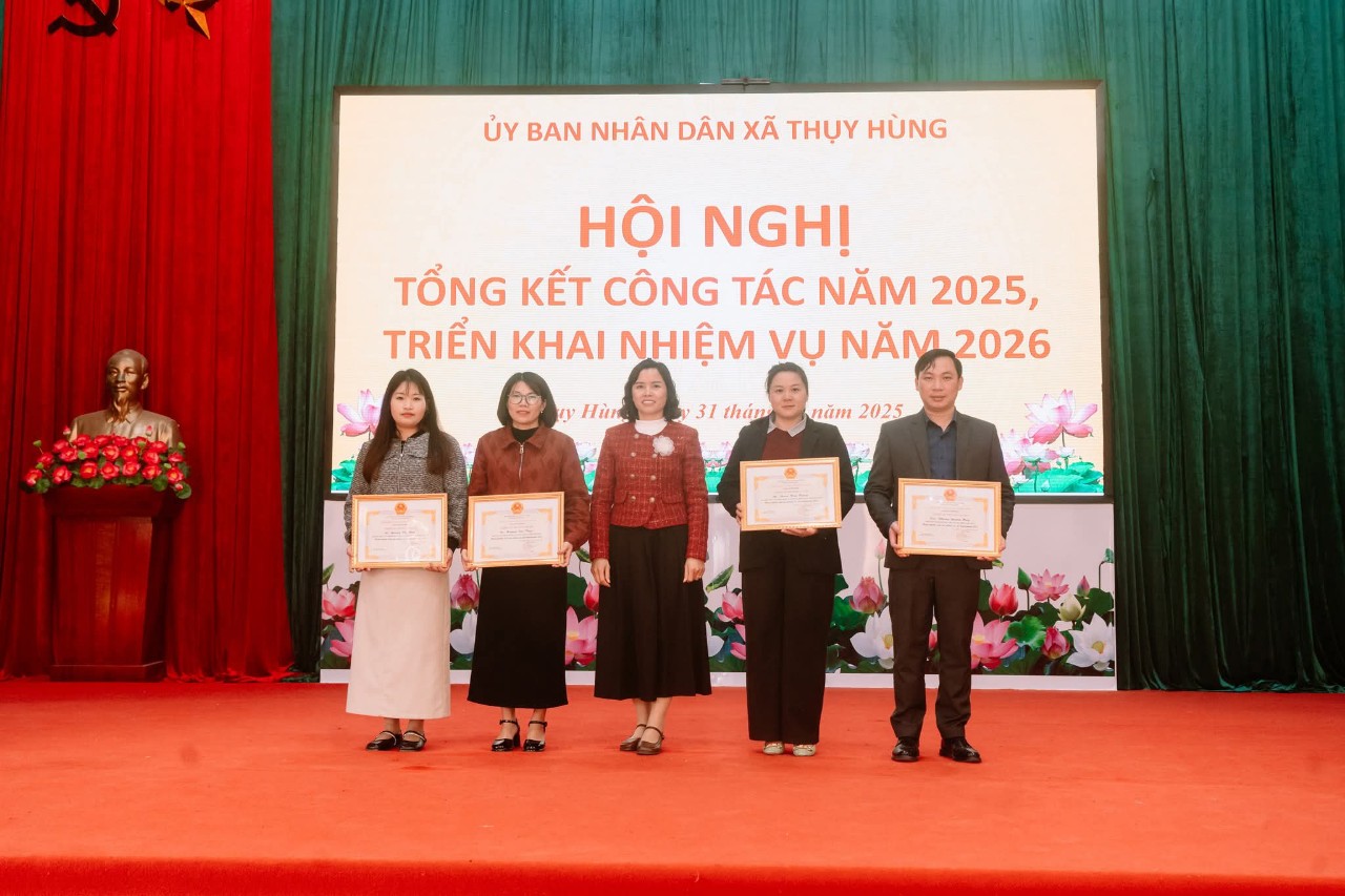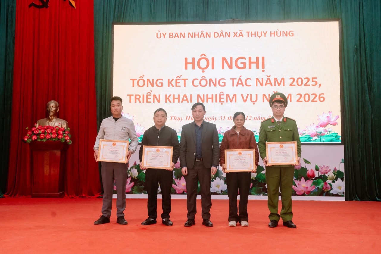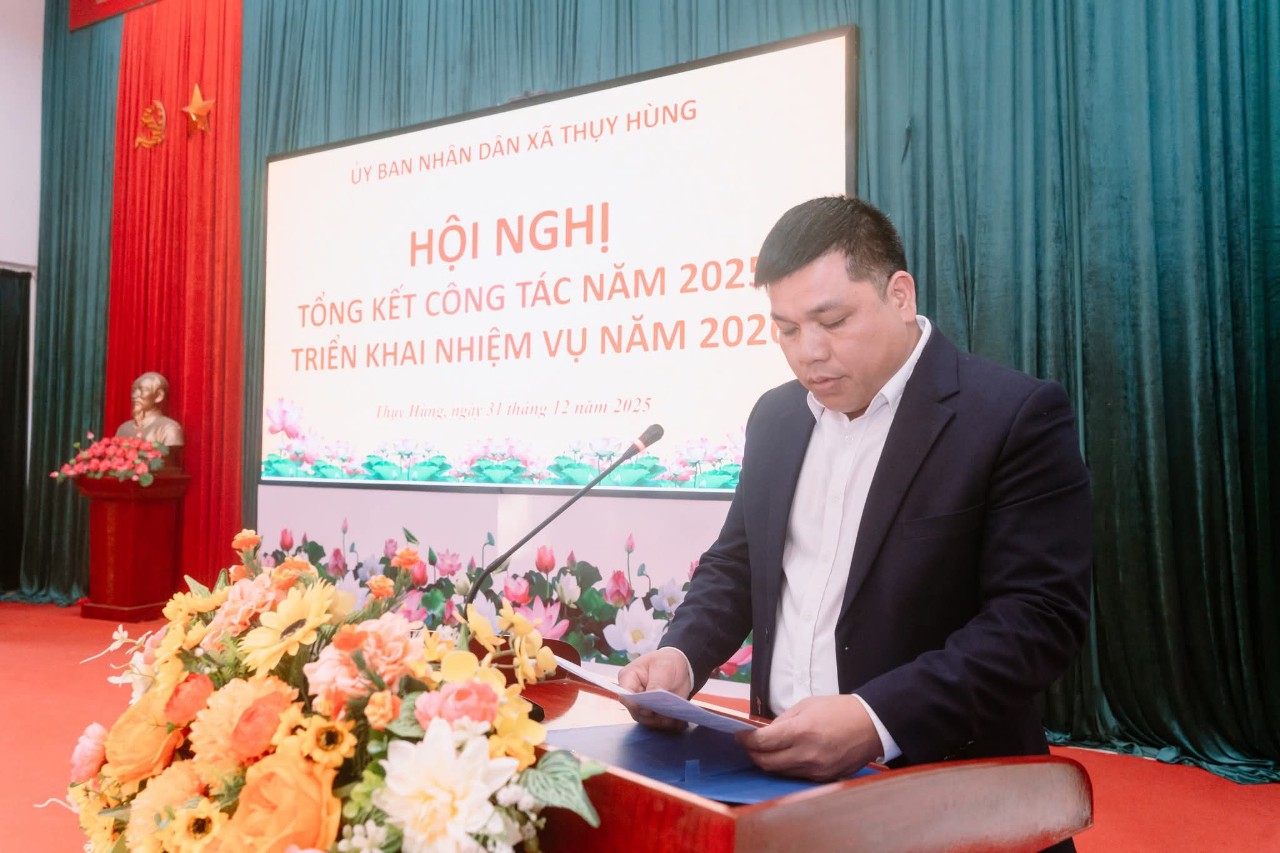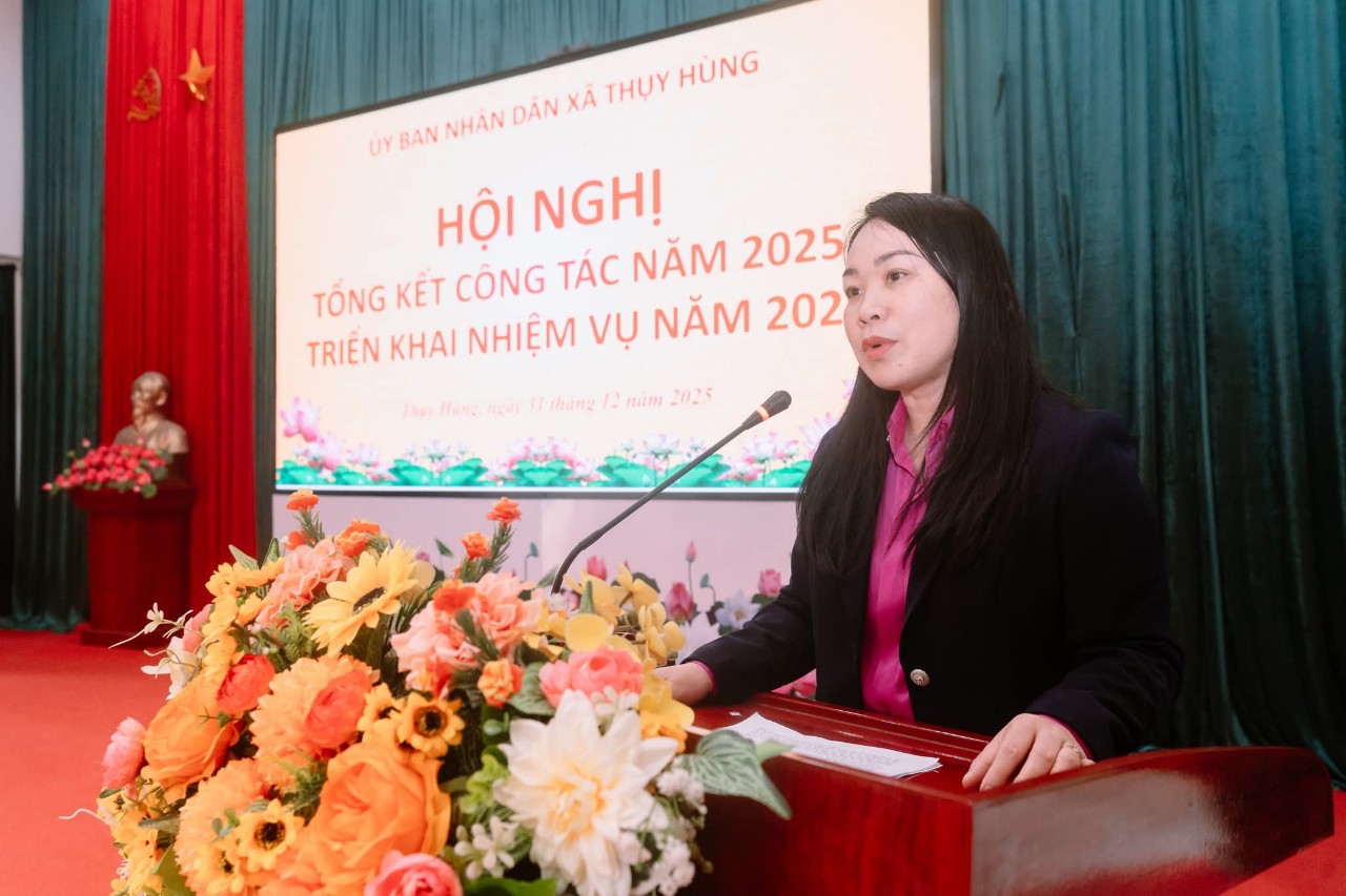 🔔UBND XÃ THỤY HÙNG TỔ CHỨC HỘI NGHỊ TỔNG KẾT CÔNG TÁC NĂM 2025, TRIỂN KHAI NHIỆM VỤ NĂM 2026 ➡️Thực hiện chương trình công tác năm 2025, chiều 31/12/2025, UBND xã Thụy Hùng long trọng tổ chức Hội nghị tổng kết công tác năm 2025 và triển khai nhiệm vụ năm 2026. Dự và chỉ đạo Hội nghị có Đồng chí Đàm Thanh Loan, Phó Bí thư thường trực Đảng uỷ xã, các đồng chí trong Thường trực HĐND, UBND, Ủy ban MTTQ xã; trưởng các ban, ngành, đoàn thể; cán bộ, công chức xã và đại diện các thôn trên địa bàn. ➡️Tại hội nghị, các đại biểu đã được nghe báo cáo tổng kết công tác chỉ đạo, điều hành của UBND xã trong năm 2025. Báo cáo nêu rõ: năm 2025, UBND xã Thụy Hùng đã tập trung chỉ đạo thực hiện đồng bộ các nhiệm vụ phát triển kinh tế – xã hội, quốc phòng – an ninh; tình hình sản xuất nông nghiệp ổn định, Việc vận hành mô hình chính quyền địa phương 2 cấp được thực hiện hiệu quả, thu ngân sách đạt 362,6% dự toán tỉnh giao; diện tích trồng rừng đạt 100,3% kế hoạch; lĩnh vực văn hóa – xã hội được quan tâm triển khai; công tác xây dựng nông thôn mới được quan tâm; các lĩnh vực văn hóa – xã hội, giáo dục, y tế tiếp tục được duy trì và nâng cao chất lượng; an sinh xã hội được đảm bảo; cải cách hành chính có nhiều chuyển biến tích cực; an ninh chính trị, trật tự an toàn xã hội được giữ vững. ➡️Hội nghị cũng dành thời tham luận về công tác phòng chống ma túy, an ninh trật tự trên địa bàn ; Công tác giải quyết thủ tục hành chính gắn với nâng cao chất lượng phục vụ người dân và doanh nghiệp; phong trào “Toàn dân đoàn kết xây dựng đời sống văn hóa ở khu dân cư”. ➡️Phát biểu chỉ đạo tại Hội nghị, đồng chí Phó Bí thư thường trực Đảng uỷ xã ghi nhận, biểu dương những kết quả UBND xã Thụy Hùng đã đạt được trong năm 2025. Đồng thời đề nghị UBND xã tiếp tục lãnh đạo, chỉ đạo toàn diện các lĩnh vực. Tập trung lãnh đạo, chỉ đạo thực hiện đạt và vượt các chỉ tiêu, các nhiệm vụ trọng tâm; Lãnh đạo chuẩn bị chu đáo và tổ chức thành công cuộc bầu cử đại biểu Quốc hội khóa XVI và đại biểu HĐND các cấp nhiệm kỳ 2026-2031.