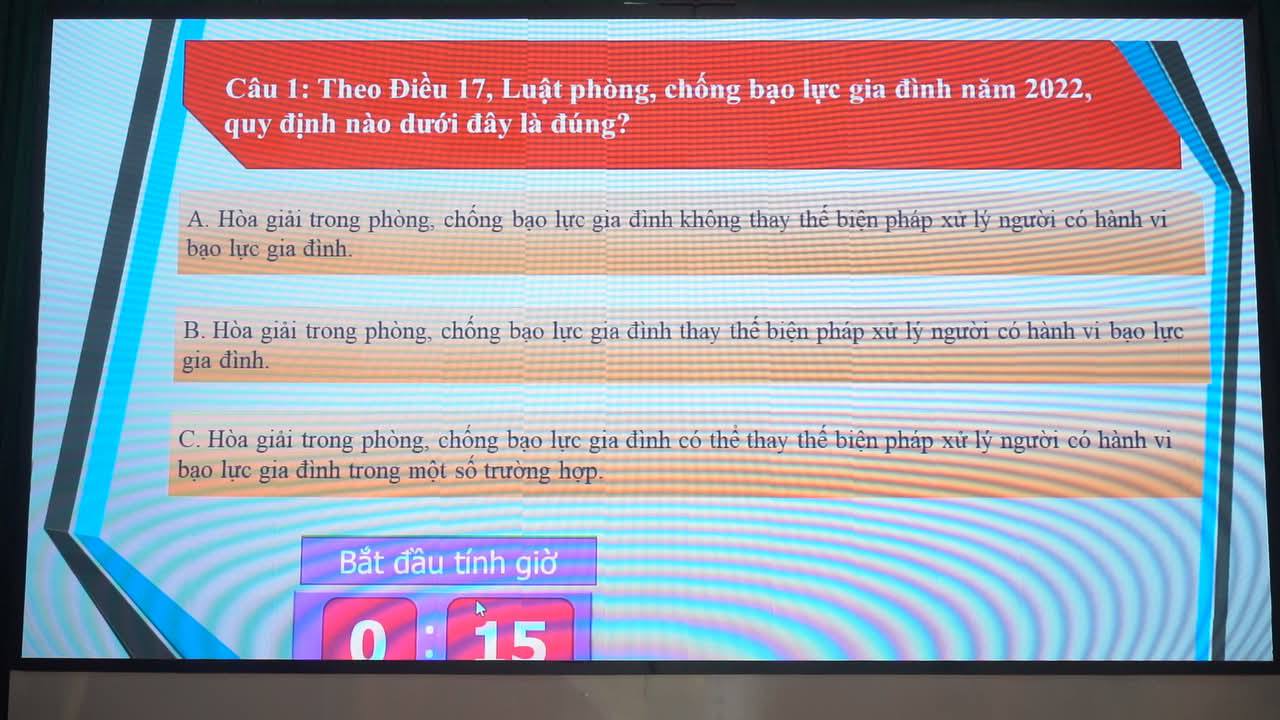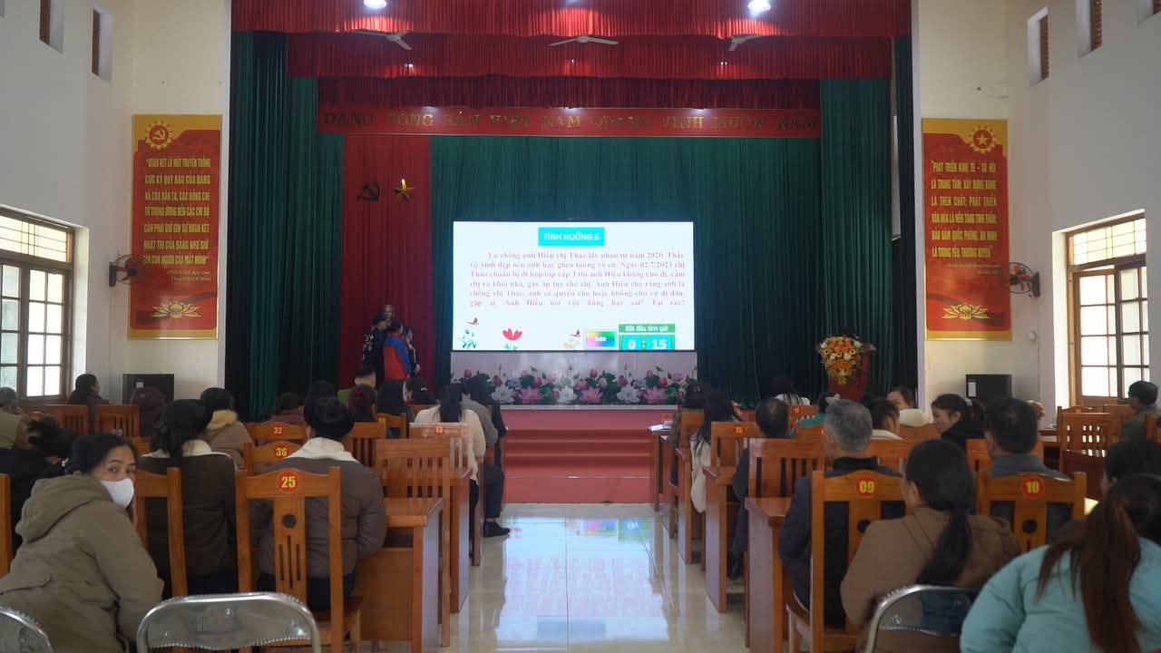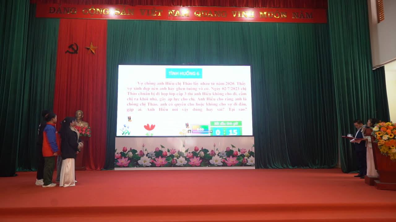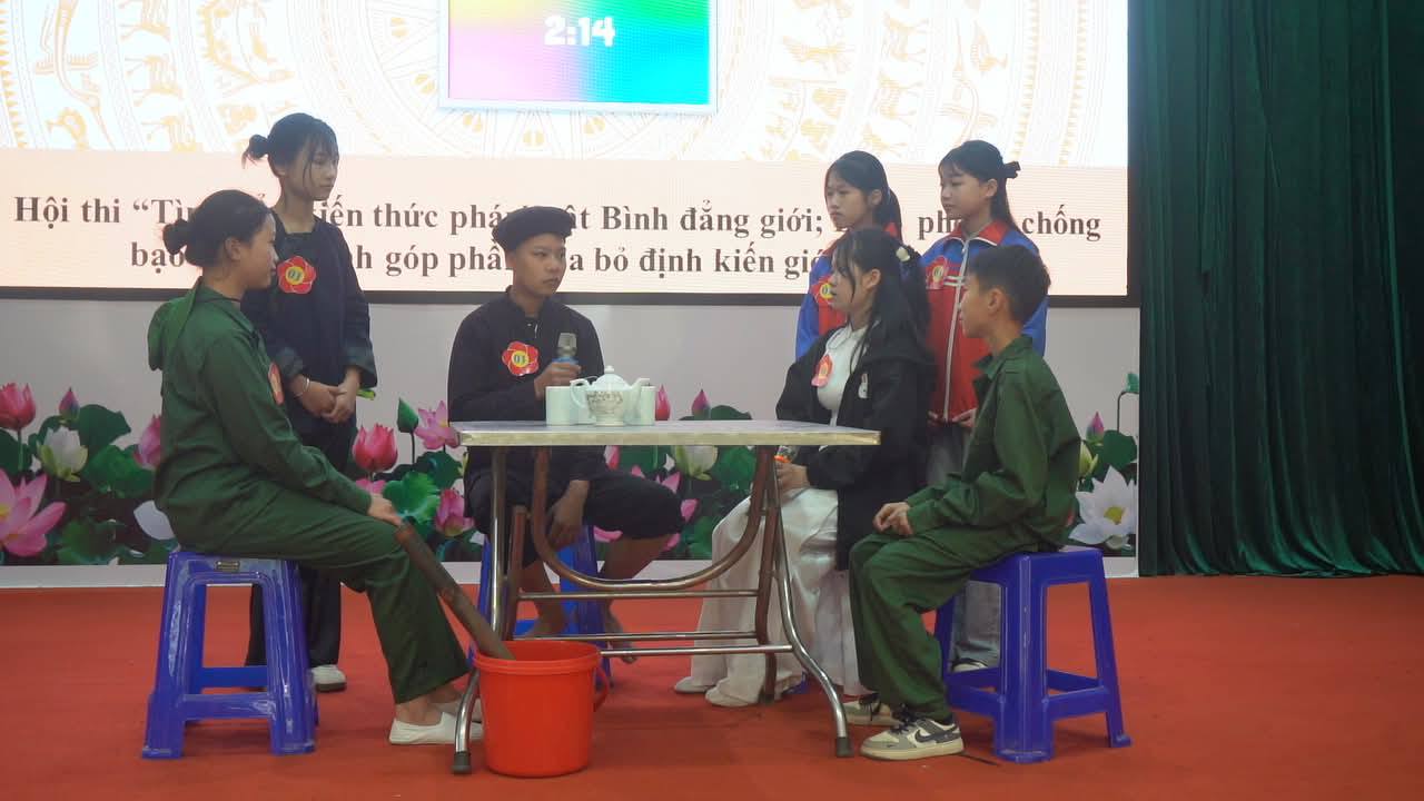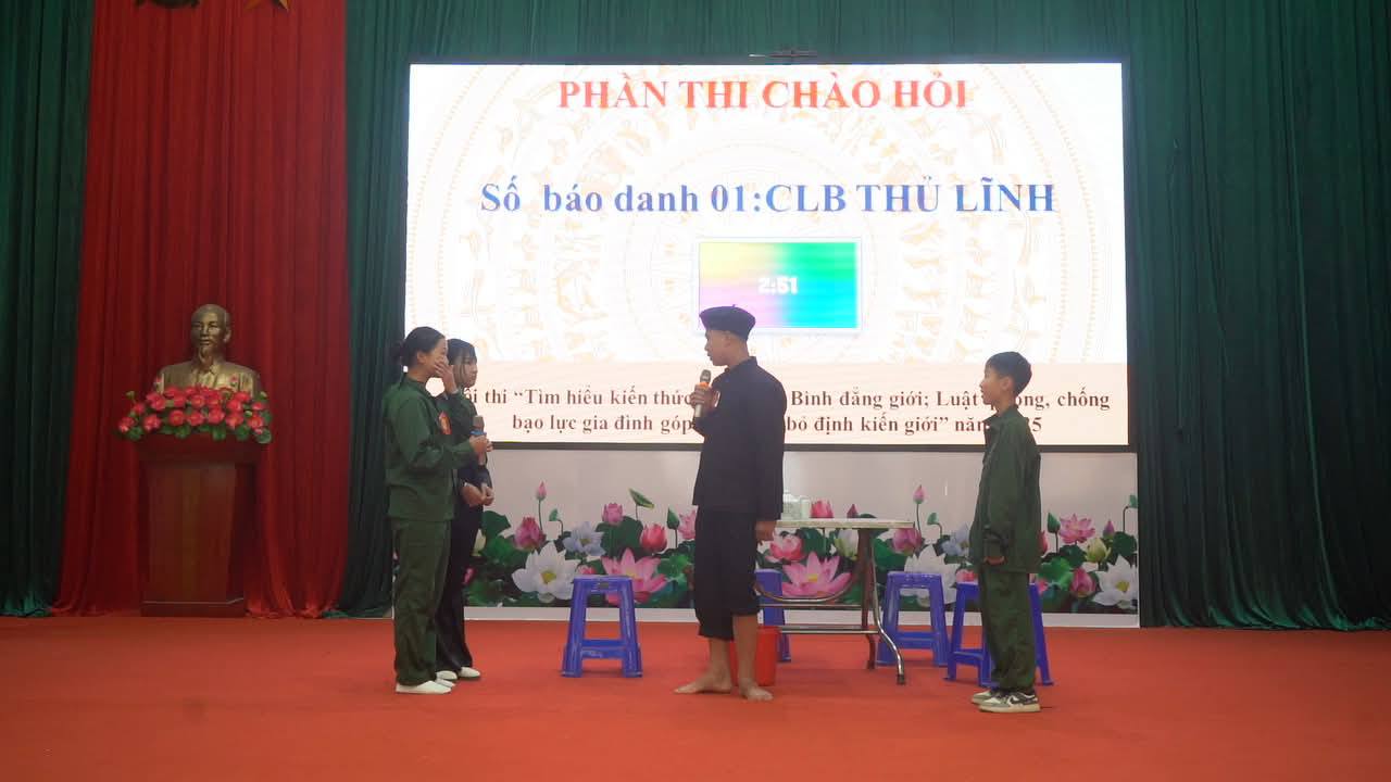 Tham gia Hội thi có 07 đội đến từ các đơn vị trường học, thôn trên điạ bàn. Các đội sẽ phải trải qua 3 phần thi: Phần chào hỏi, phần thi trắc nhiệm và phần thi xử lý tình huống. Hội thi diễn ra trong không khí sôi nổi, hào hứng, các đội thi đã khéo léo lồng ghép những câu chuyện thực tế, phản ánh chân thực vai trò, vị trí của phụ nữ và nam giới trong gia đình và xã hội hiện nay, đồng thời truyền tải thông điệp về sự tôn trọng, chia sẻ và bình đẳng giữa các giới. Nội dung các phần thi tập trung làm rõ các chủ trương, chính sách của Đảng và Nhà nước về bình đẳng giới; phòng, chống bạo lực trên cơ sở giới; xây dựng gia đình no ấm, tiến bộ, hạnh phúc, văn minh.