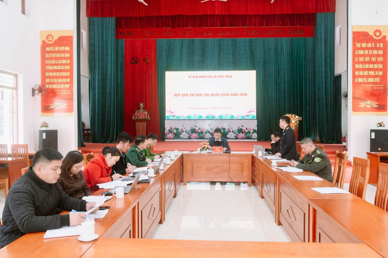 ➡️Chiều 15/1/2026, Ban Chỉ đạo thu ngân sách xã Thụy Hùng tổ chức họp đánh giá kết quả thu ngân sách trên địa bàn trong thời gian qua và triển khai nhiệm vụ, giải pháp thực hiện trong năm 2026. Đồng chí Vũ Biền - Chủ tịch UBND xã, Trưởng Ban Chỉ đạo thu ngân sách xã chủ trì cuộc họp. Tham dự có các thành viên Ban Chỉ đạo và đại diện các ban, ngành, đoàn thể liên quan. ➡️Tại cuộc họp, Ban Chỉ đạo đã nghe báo cáo tình hình thực hiện thu ngân sách trên địa bàn xã năm 2026; phân tích những khoản thu so với kế hoạch được giao; đồng thời làm rõ nguyên nhân, nhất là những khó khăn, vướng mắc trong công tác quản lý thu, chống thất thu ngân sách.