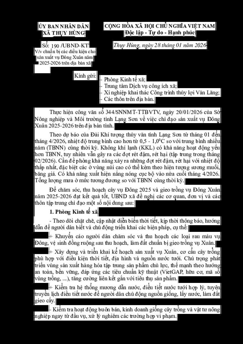| Tiêu đề văn bản | V/v chỉ đạo sản xuất vụ Đông Xuân năm 2025-2026 trên địa bàn xã | ||