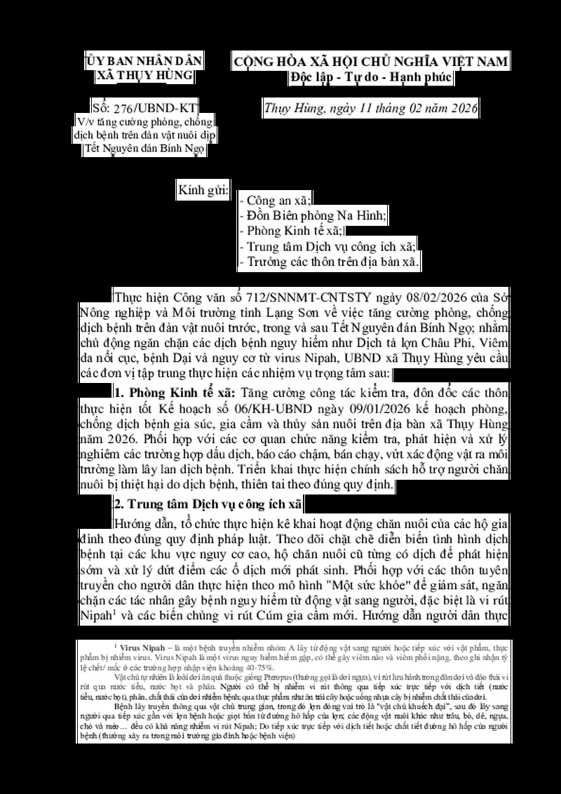 | Tiêu đề văn bản | V/v tăng cường phòng, chống dịch bệnh trên đàn vật nuôi dịp Tết Nguyên đán Bính Ngọ | ||